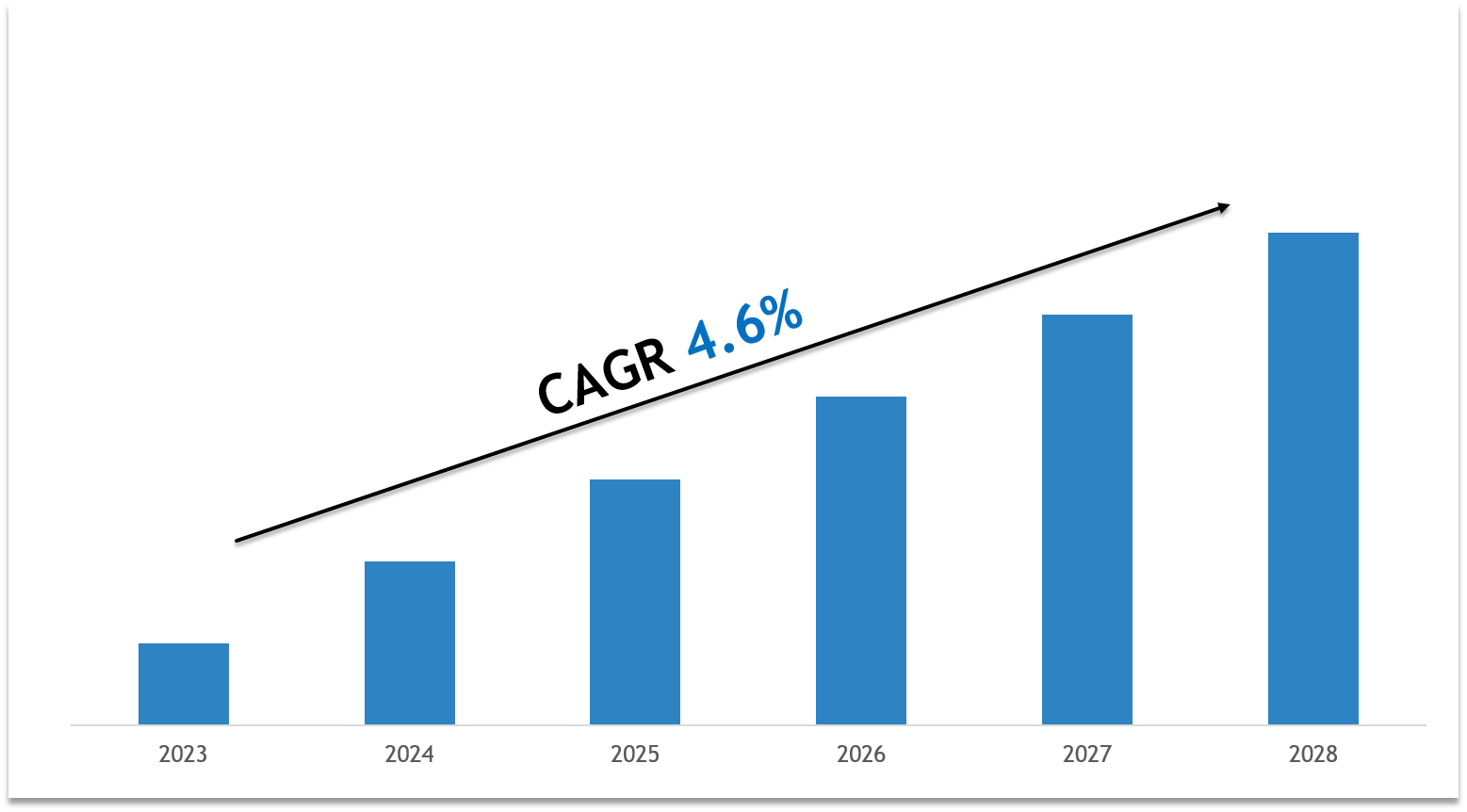 The Global Aircraft Ground Support & Hangar Equipment Market is anticipated to grow at a CAGR of around 4.6% during the forecast period, i.e., 2023-28. The growth of the market would be propelled mainly by the flourishing aviation industry, backed by the rapidly rising number of air passengers worldwide and, subsequently, the increasing aircraft fleet. With the increasing number of aircraft, the need to ensure their safety & storage is also rising, i.e., leading to the burgeoning production of GSE (ground support equipment) & hangars.
