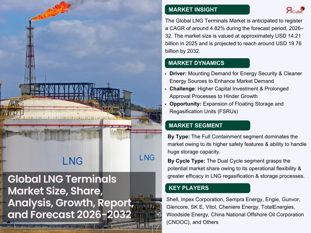 The Global LNG Terminals Market is anticipated to register a CAGR of around 4.82% during the forecast period, 2026–32.