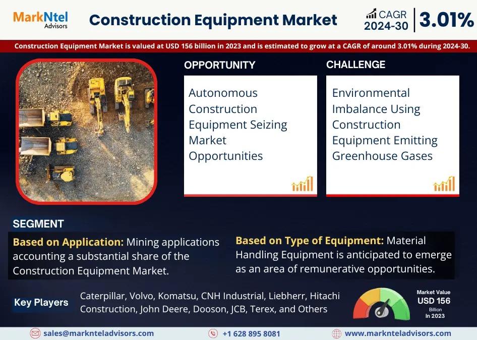 MarkNtel Advisors, a leading market research and consulting firm, has announced the release of its latest study titled Construction Equipment Market Research Report: Forecast (2024–2030). This report provides a detailed assessment of the Construction Equipment, covering its evolving dynamics, emerging trends, key growth drivers, major challenges, and competitive landscape.
