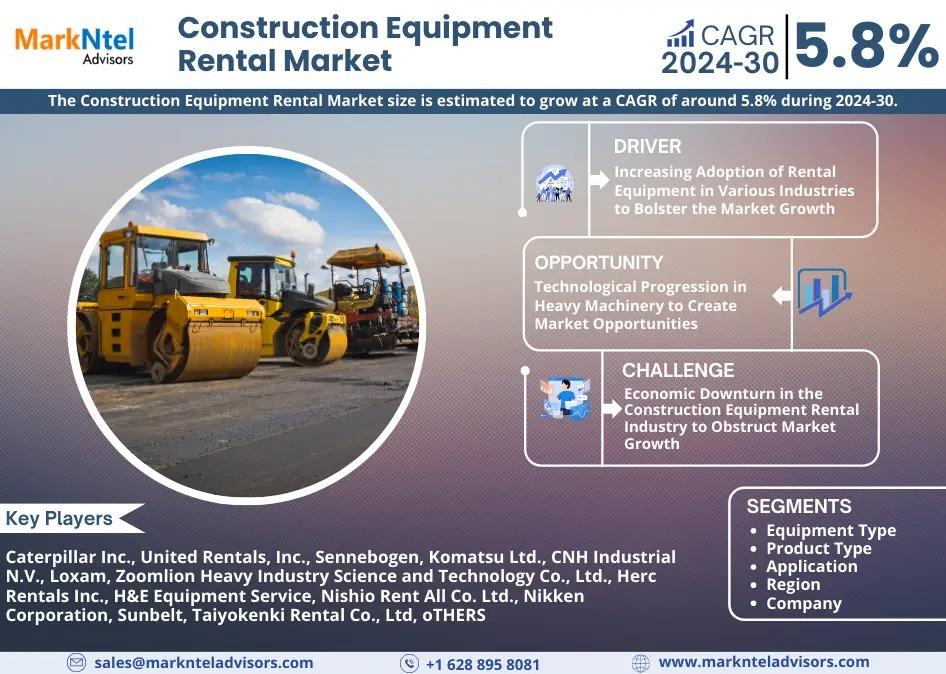 MarkNtel Advisors, a leading market research and consulting firm, has announced the release of its latest study titled Construction Equipment Rental Market Research Report: Forecast (2024–2030). This report provides a detailed assessment of the Construction Equipment Rental, covering its evolving dynamics, emerging trends, key growth drivers, major challenges, and competitive landscape.