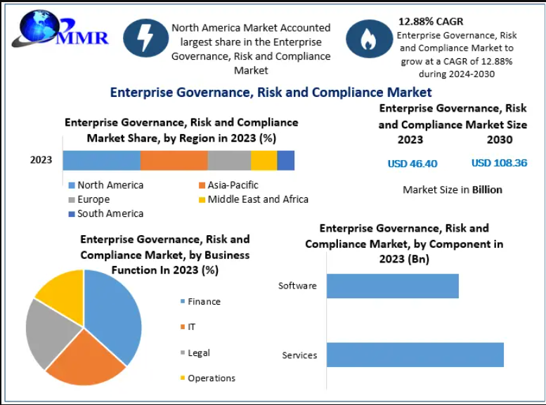 The global GRC market—valued at USD 46.40 billion in 2023—is projected to reach USD 108.36 billion by 2030, driven by technological innovation, expanding regulatory frameworks, and heightened corporate accountability.