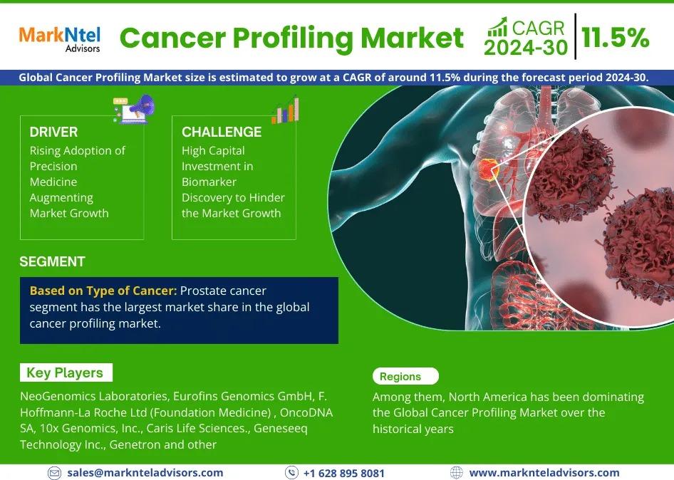 MarkNtel Advisors, a leading market research and consulting firm, has announced the release of its latest study titled Cancer Profiling Market Research Report: Forecast (2024–2030). This report provides a detailed assessment of the Cancer Profiling, covering its evolving dynamics, emerging trends, key growth drivers, major challenges, and competitive landscape.